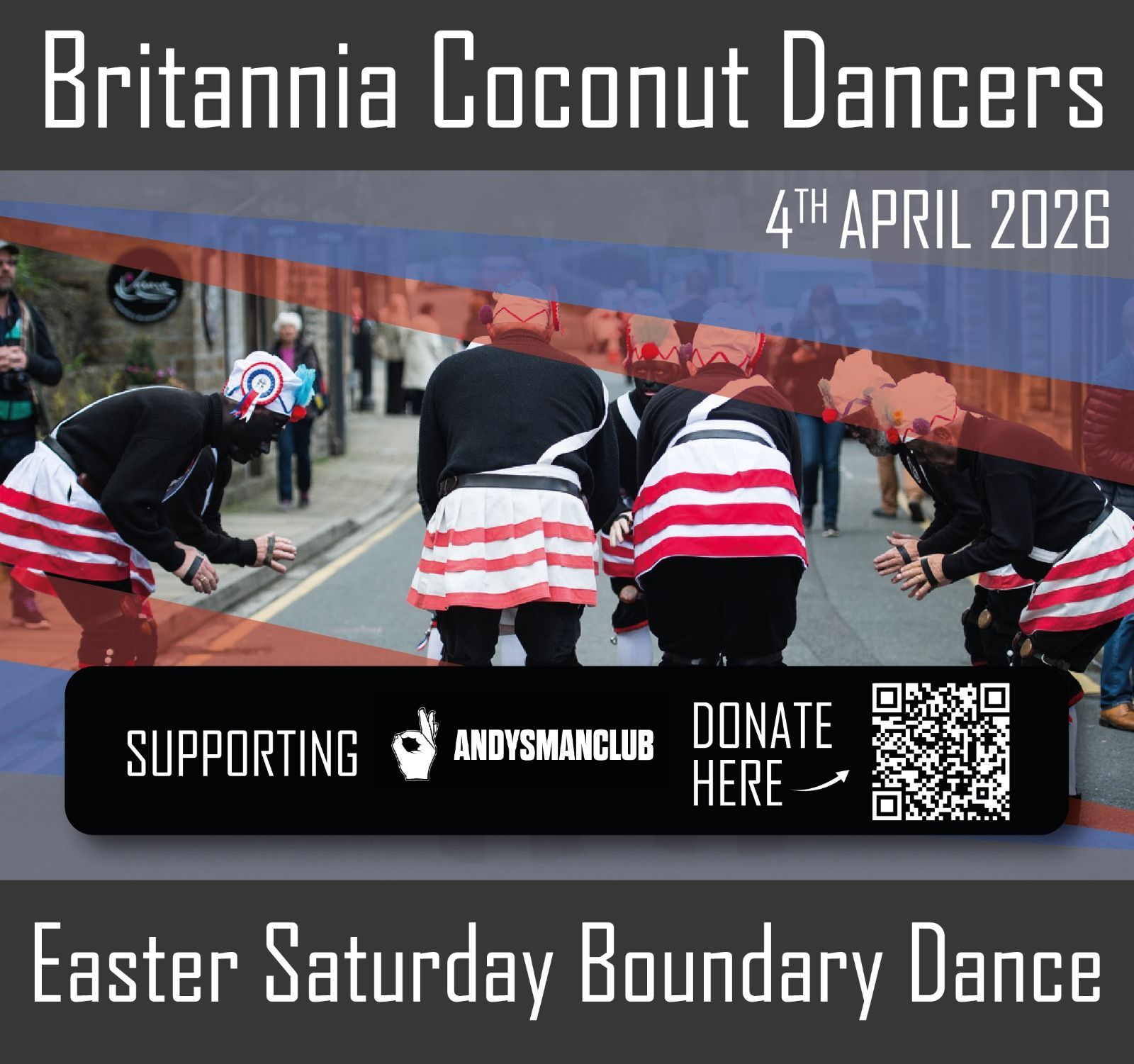 This year, the Britannia Coconut Dancers are proud to support ANDYSMANCLUB as our chosen charity during the traditional Easter Saturday Boundary Dance.